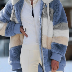 Der stilvolle, warme Wintermantel Antonia wertet Ihre Wintergarderobe auf. Er kombiniert Luxus und Funktionalität mit einem einzigartigen Patchwork-Design und einem kuscheligen Kunstfellkragen. Der robuste Reißverschluss bietet optimalen Kälteschutz.