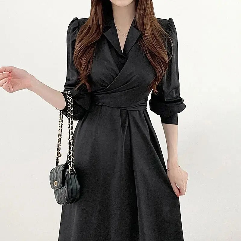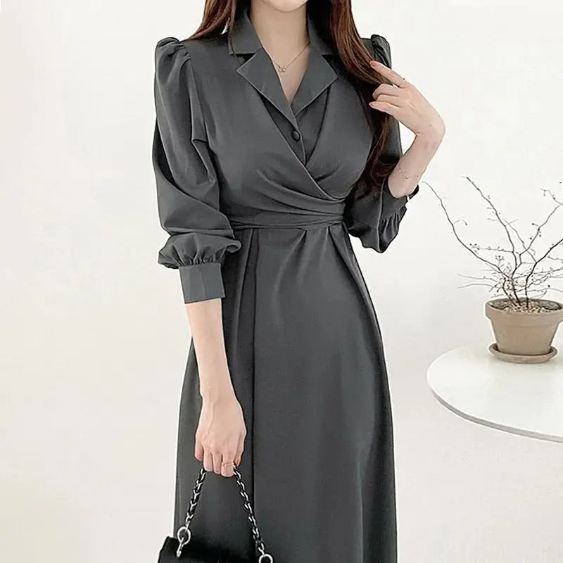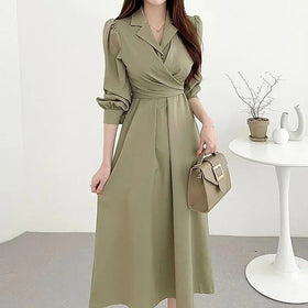 Das Thaliora® | Elegantes Wickelkleid mit Reverskragen verleiht Ihrem Auftritt pure Klasse – ideal für Business, Abendveranstaltungen oder Alltag. Der Wickelstil betont Ihre Figur, der Reverskragen sorgt für edle Struktur. Lange Ärmel mit dezenten Falten runden das Design ab. Schlichte Raffinesse trifft modernen Chic – ein Statement-Stück.