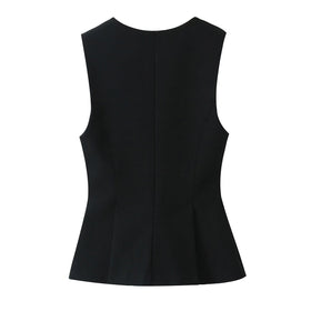 Elegantes zweifärbiges, weit ausgestelltes, gefaltetes ärmelloses Top von Fudus