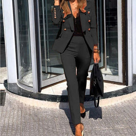 Das Marlena Set bringt Eleganz und Professionalität in dein Arbeitsoutfit. Dieser klassische Zweiteiler ist perfekt für den Alltag im Büro, Meetings oder elegante Anlässe. Mit seinem taillierten Blazer und der schmal geschnittenen Hose bist du stets gut gekleidet und strahlst Selbstbewusstsein aus.