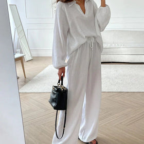 Eleganz und Komfort vereint: Unser Herbst Einfacher V-Ausschnitt Set Zweiteiliges betont Ihre natürliche Schönheit und bietet höchsten Tragekomfort.