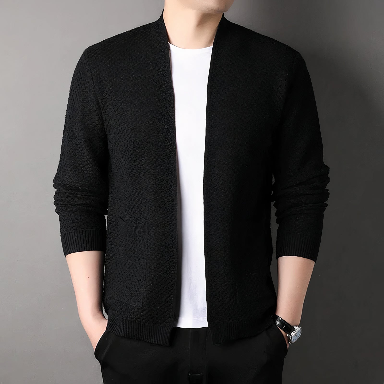 Der ELIAS Strick-Cardigan mit Ananas-Karo-Taschen bringt Raffinesse in Ihre Garderobe. Dieses elegante Herren-Design in vielseitigen Unifarben ist die perfekte Ergänzung. Er ist ein stilvoller und funktionaler Begleiter für jede Jahreszeit.