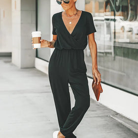 EMMA Jumpsuit: Kurzarm und V-Ausschnitt