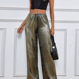 Trage diese modischen Metallic-Hosen für jeden Anlass. Der glänzende Stoff lässt dich strahlen, der hohe, elastische Bund mit Kordelzug sorgt für perfekte Passform.