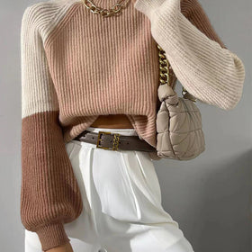 Dieser Damen-Pullover mit Color Block und Stehkragen ist perfekt für Freizeit, Alltag und Urlaub. Aus 52% Acryl, 28% Polyamid und 20% Polyester, bietet er ein weiches, atmungsaktives Gefühl mit mittlerem Stretch. Die lockere Passform und die trendigen Laternenärmel sorgen für Komfort und Eleganz. Ideal zum Layern oder solo.