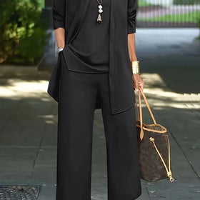Dieses stilvolle 3-teilige Set (Langarm-Cardigan, Top, Hose) ist vielseitig einsetzbar. Die Cardigan mit offenem Vorderteil lässt sich vielseitig kombinieren. Das Top hat einen Rundhalsausschnitt und die Hose eine bequeme Passform. Hochwertige Materialien sorgen für einen lässigen, schicken Look. Ideal für Alltag und gemütliche Abende.