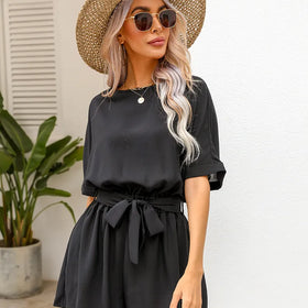 Verlieben Sie sich in diesen gewebten Strampler mit U-Boot-Ausschnitt, O-Ring-Gürtel und kurzen Dolman-Ärmeln. Er ist aus hochwertigem Stoff gefertigt und äußerst angenehm zu tragen! Atmungsaktiv und weich fühlt er sich wunderbar auf der Haut an und ist zu jeder Jahreszeit tragbar.