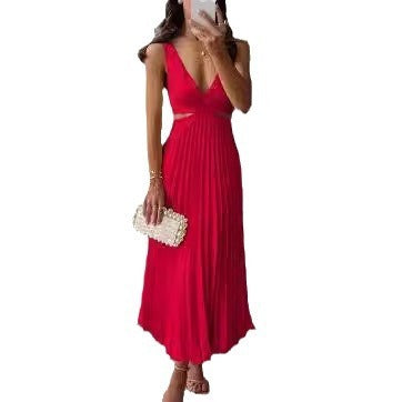 Faltenkleid mit V-Ausschnitt, offenem Rücken und Trägern von Fudus