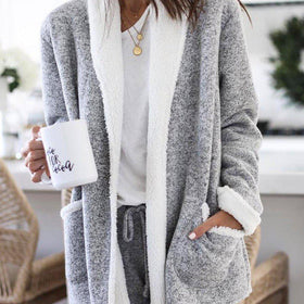 Felicity: Weiche, grau-weiße Strickjacke mit Doppeltaschen