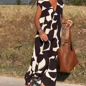 Kleid mit Aufdruck und V-Ausschnitt - Trendig und feminin
