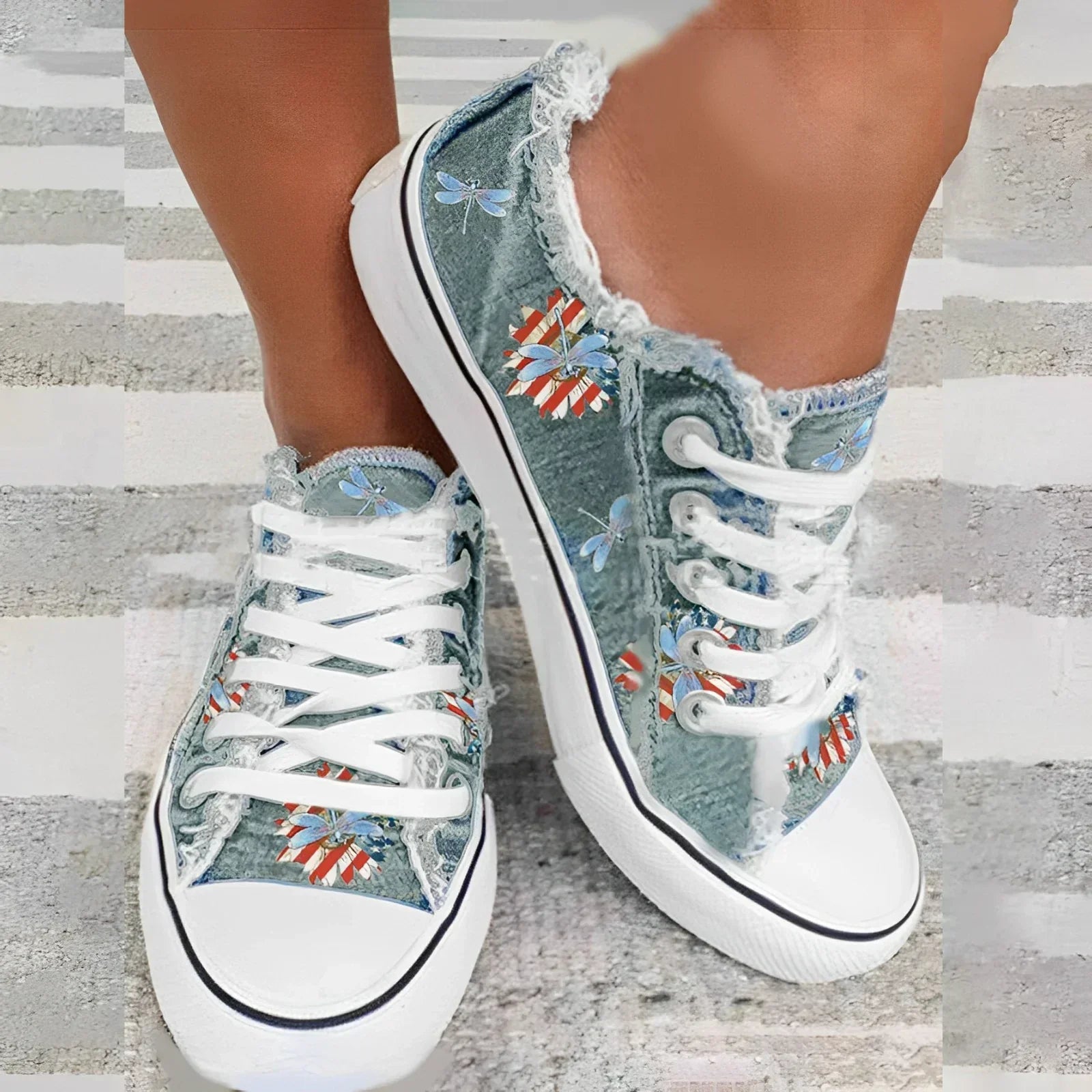 Die Florianne - Blumendruck Flach Turnschuhe bringen Farbe und Charme in deinen Alltag. Mit ihrem floralen Muster und der bequemen, flachen Sohle bieten sie einen trendigen Look und maximalen Komfort. Perfekt für Spaziergänge, Freizeit oder als modisches Highlight.