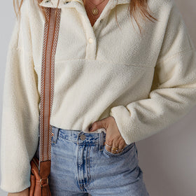 Frauen Fleece Sweatshirt mit Umlegekragen von Fudus (weiß)