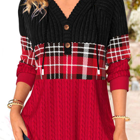 Frauen Kapuzenpullover mit rotem Karo-Patchwork von Fudus