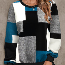 Frauen Sweatshirt mit lebhaftem geometrischem Muster und Rundhalsausschnitt von Fudus