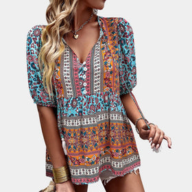 Frauen Tunika Bluse mit Knöpfen von Fudus
