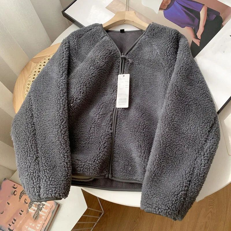 Erleben Sie ultimative Wärme mit dem Weicher Wintermantel für Frauen - Fleur aus kuscheliger Lammwolle. Dieser Mantel kombiniert Komfort mit trendigem V-Ausschnitt für einen lässig-schicken Look. Die robuste Struktur und langen Ärmel halten Sie warm und stilvoll. Fleur ist ein unverzichtbares Teil für jede modebewusste Wintergarderobe – elegant und alltagstauglich. Halten Sie die Kälte ab und setzen Sie ein stilvolles Statement.