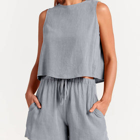 Fudus ärmelloses, lockeres Oberteil und Shorts im Zweiteiler
