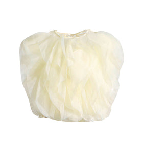 Fudus ärmelloses Netz-Sommer-Crop-Top mit Rundhalsausschnitt, Stufenrüsche und Krawattenrücken