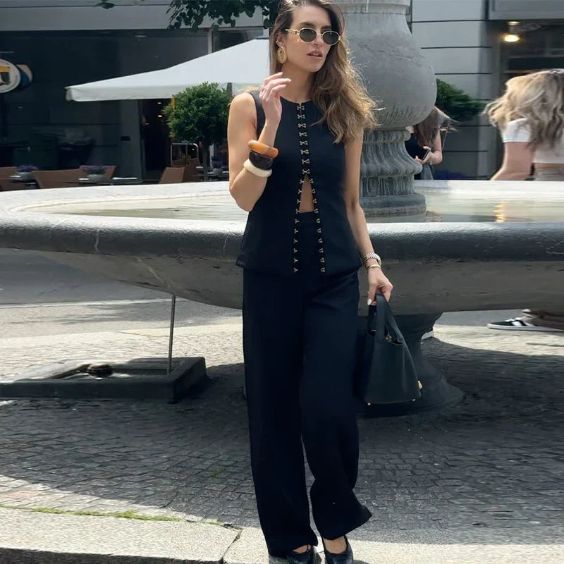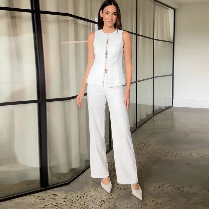 Fudus ärmelloses Oberteil mit O-Ausschnitt und hochtaillierte gerade Hose