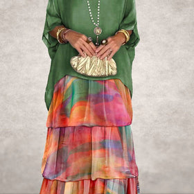 Fudus Batwing Sleeve Top and Layered Skirt Suit