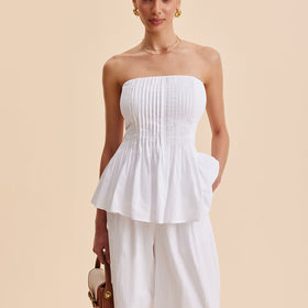 Fudus Baumwoll-Bustier-Top mit Peplum-Saum, knitterarm