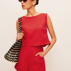 Fudus Baumwoll-Leinen Kurzset: Ärmelloses Top und kurze Hose