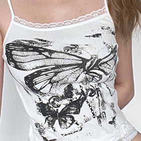 Fudus bedrucktes Cami-Crop-Top aus Spitzen-Patchwork