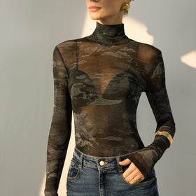 Fudus | Bedrucktes, semi-transparentes T-Shirt mit Rückenausschnitt