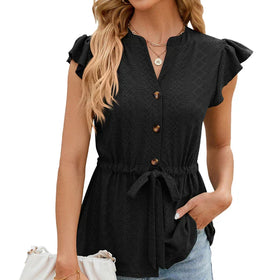 Fudus Bluse mit Rüschenärmeln, Knöpfen und Taillengürtel