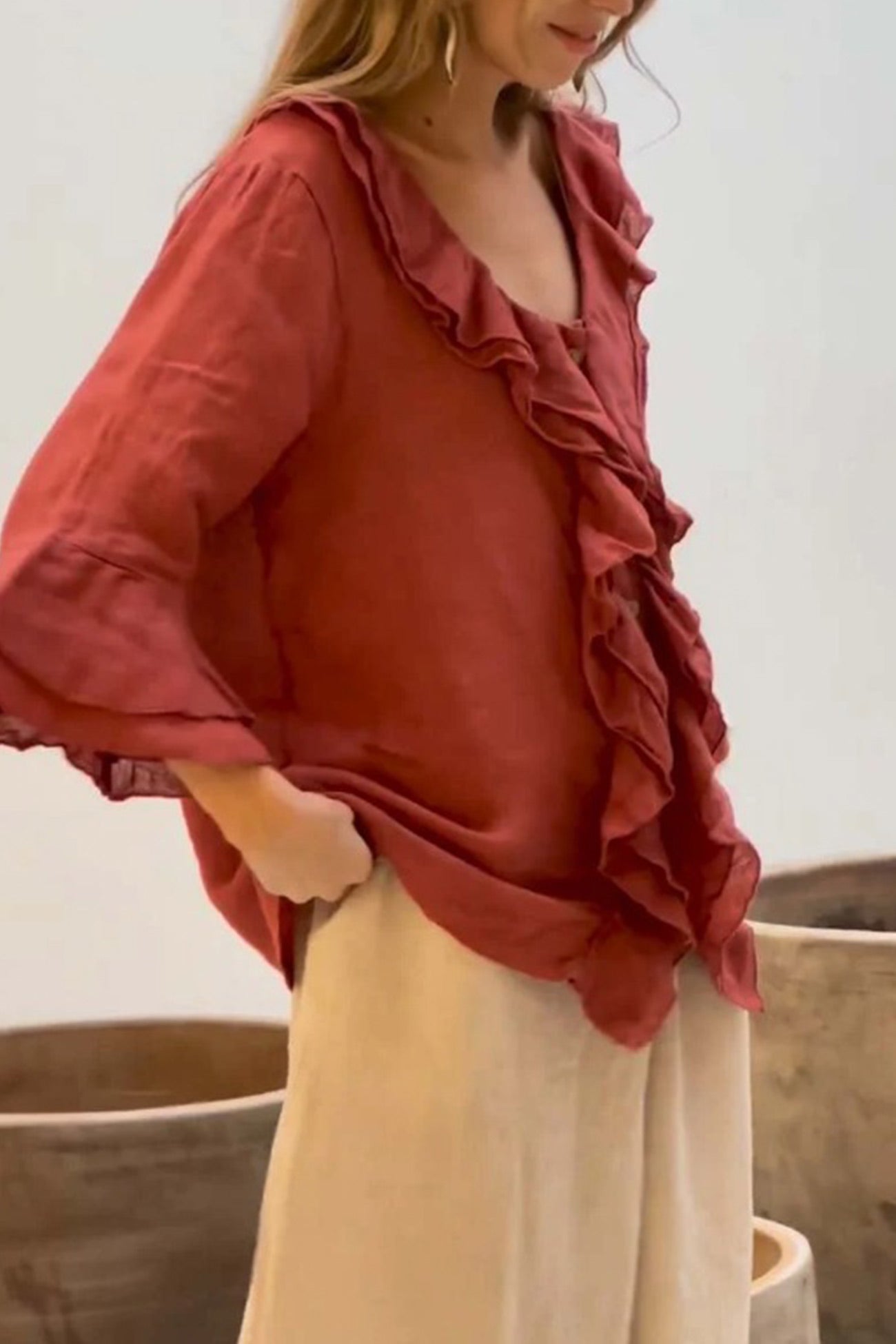 Fudus Blusen mit Schlagärmeln und einem Knopf