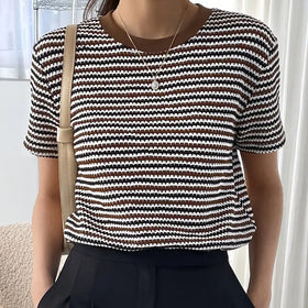 Fudus Casual Korte Mouwen T-shirt met Ronde Hals en Strepen