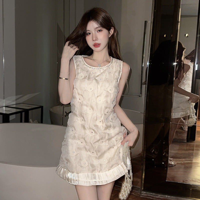 Fudus Chanel-Stil Rundhals-Plissee-Weste Kleid mit Nieten