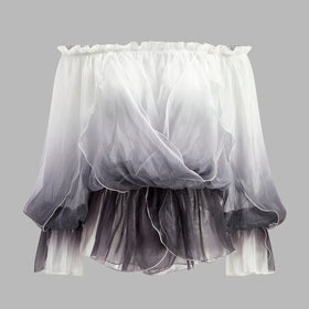 Fudus Chiffon Bluse: Semi-transparente, Blumenmuster, Schulterfrei, Farbverlauf