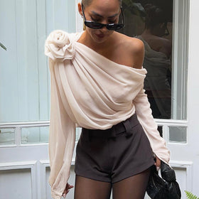 Fudus Chiffonbluse: Halbtransparent, asymmetrisch, einseitig geschulterter Schnitt