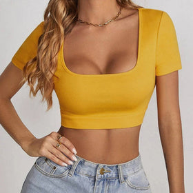 Fudus Cropped Scoop Neck Short Sleeve Ribbed Top