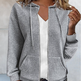 Fudus Damen Kapuzenpullover: Waffelstrick, Reißverschluss, lässiger Schnitt mit Textur