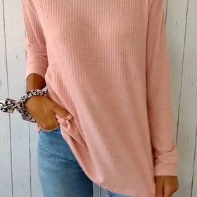 Fudus Damen Langarm-Shirt mit Rundhals, Rippstrick und Knöpfen