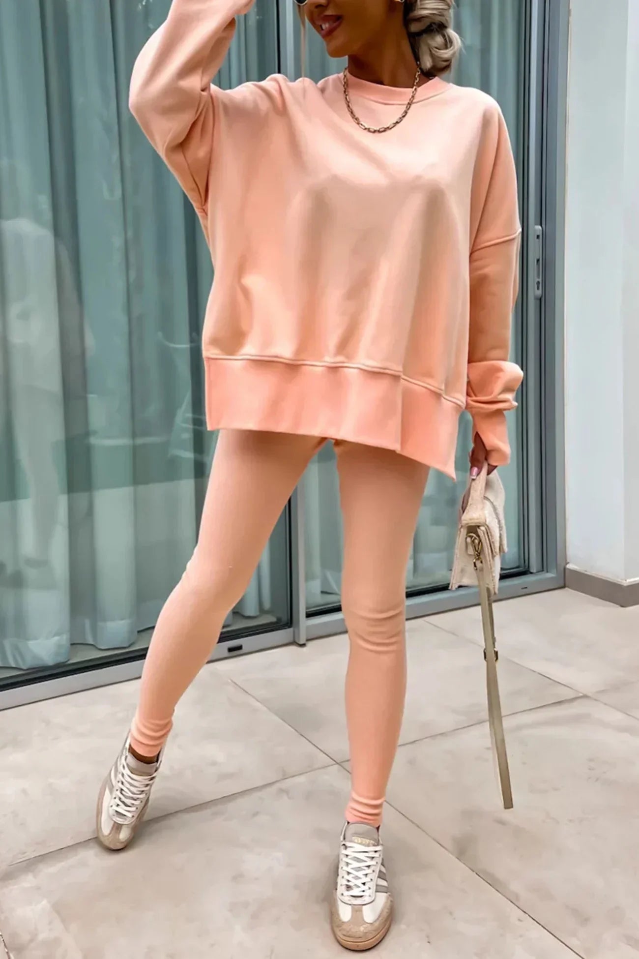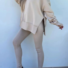 Fudus Damen-Set: Rundhals-Sweatshirt und Ripp-Leggings