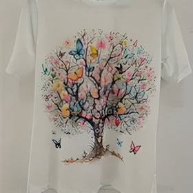 Fudus Damen T-Shirt mit 3D Schmetterlings-Baum-Motiv