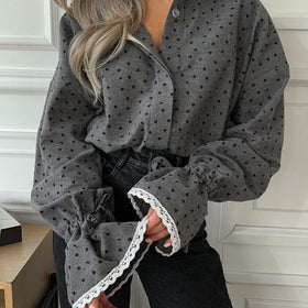 Fudus Damenbluse mit Herzprint und Knopfleiste