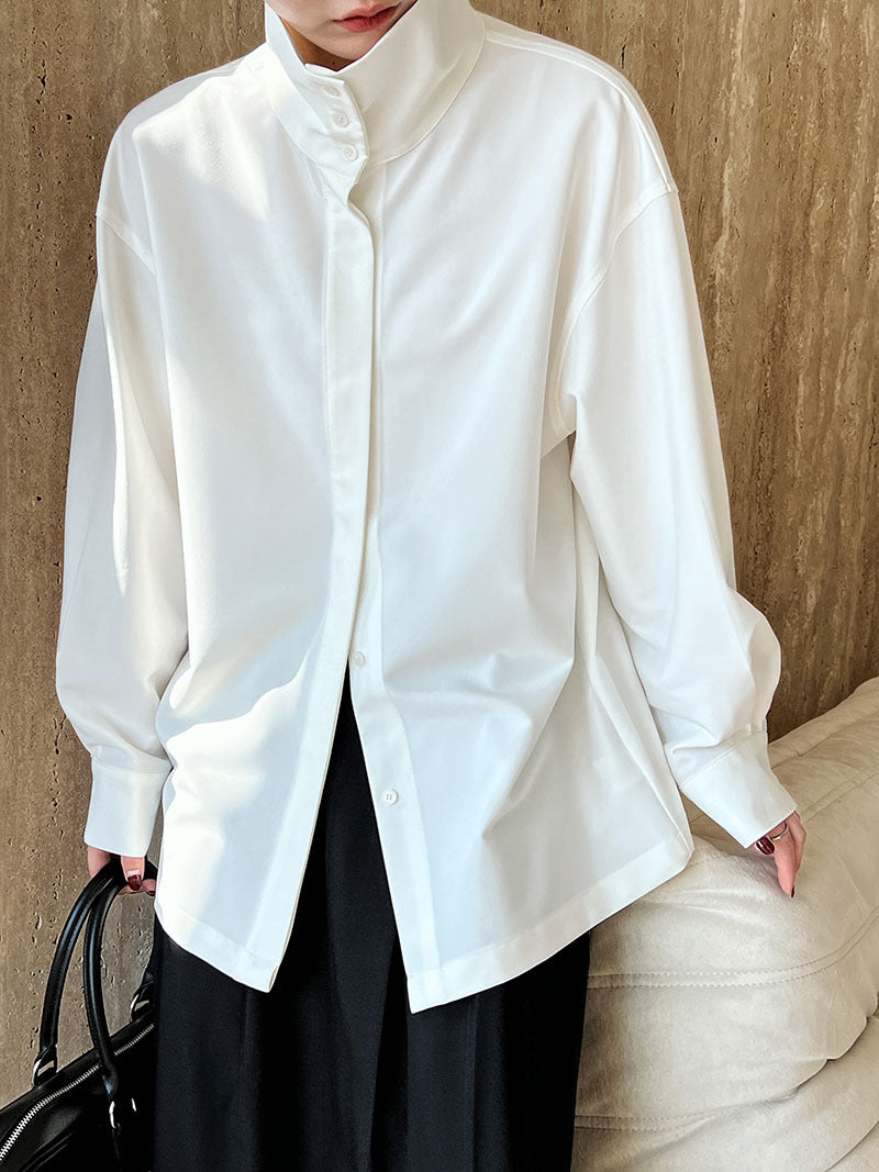 Fudus Damenbluse mit Stehkragen und langen Ärmeln