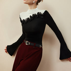 Fudus Damenbluse mit Stehkragen und Rüschen