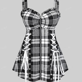 Fudus Designer Schnürtop mit Karo-Rüschen