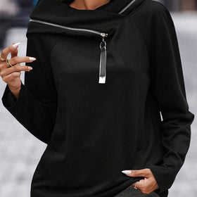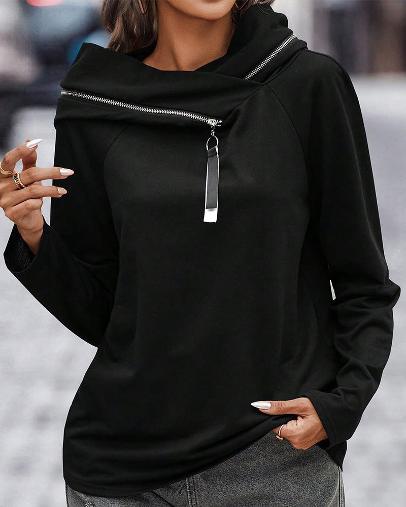 Fudus Einfarbiger Kapuzenpullover mit Reißverschluss