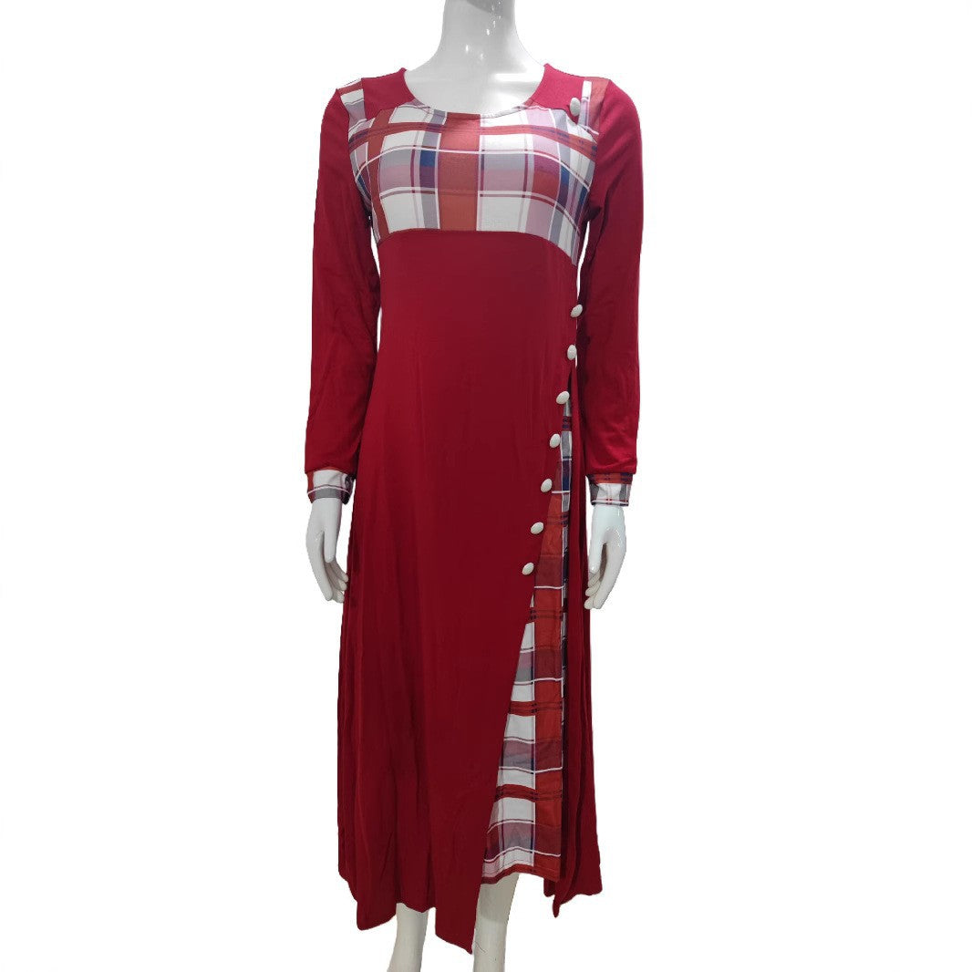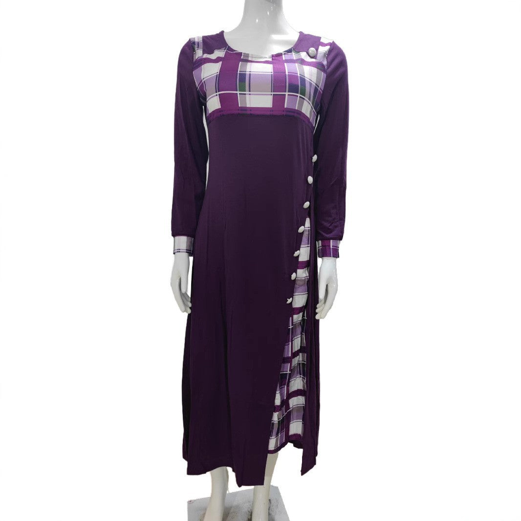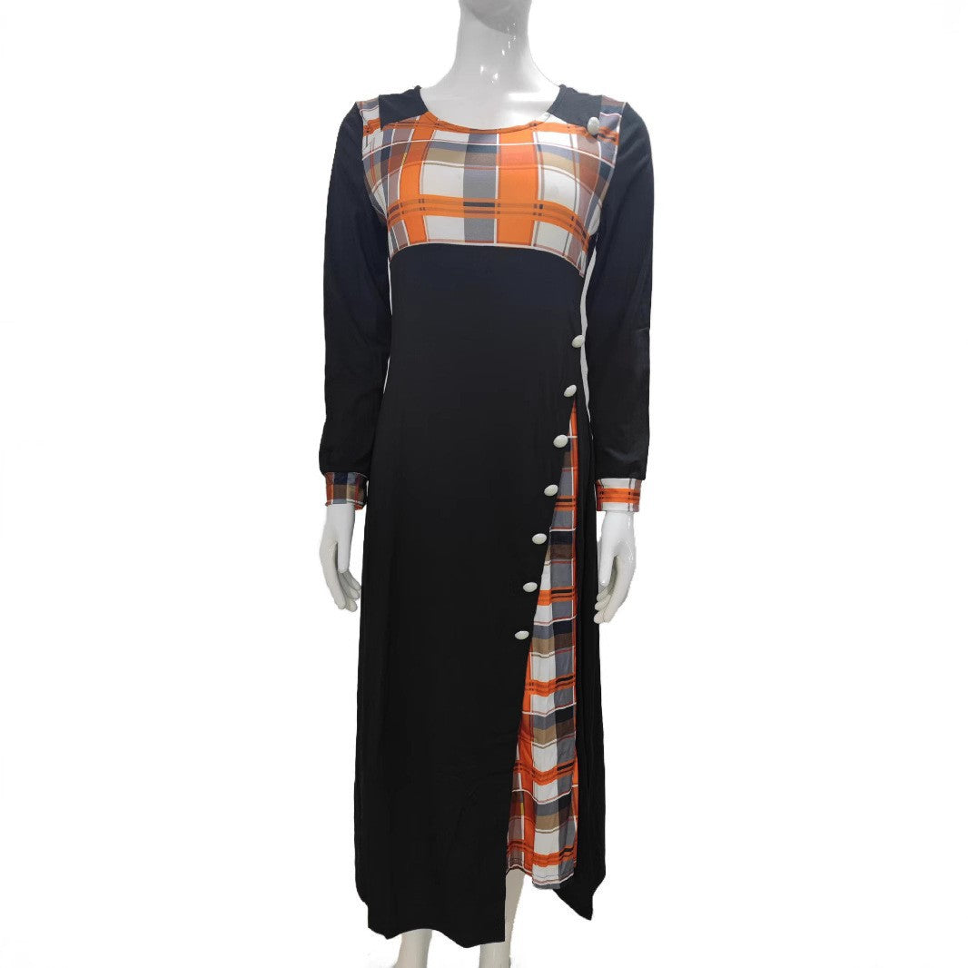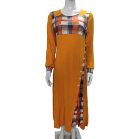 Elegante Pendel, einteilig, Maxi-Länge. Rundhals, grundlegender und Arbeitsstil. Herbst, lange Ärmel. Druck/Färbeverfahren.