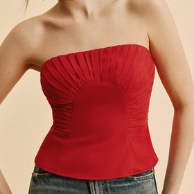 Fudus Faltenfreies Trägerloses Oberteil aus Baumwolle und Leinen