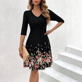Fudus figurbetontes Kleid mit V-Ausschnitt und Blumenmuster