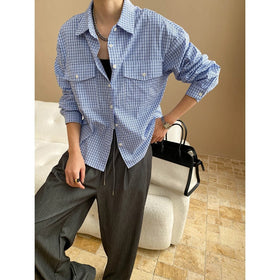 Fudus Frühjahr Hemd mit doppelter Brusttasche und Karokragen
