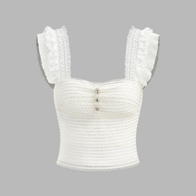 Fudus Gerüschter Träger-Smocked-Oberteil mit Knöpfen