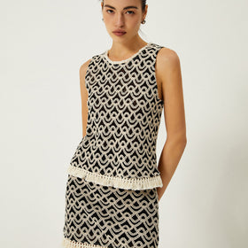 Fudus Häkel-Tanktop mit Wellenmuster und Quasten
